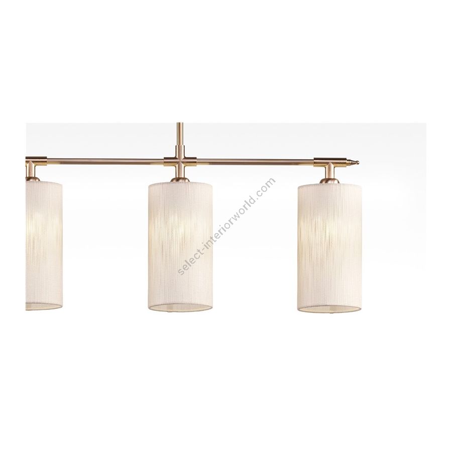 The high-quality brass chandelier, with its linear design, represents a refined and versatile choice for kitchens, countertops, and tables. Harmoniously combining modern and classic elements, this chandelier is capable of casting a soft and diffused light, thanks to its fabric lampshades. The blend of premium materials and its understated style make it perfect for creating a cozy yet elegant atmosphere. With its touch of sophistication, this chandelier adds a distinctive and classy element to the surrounding environment.