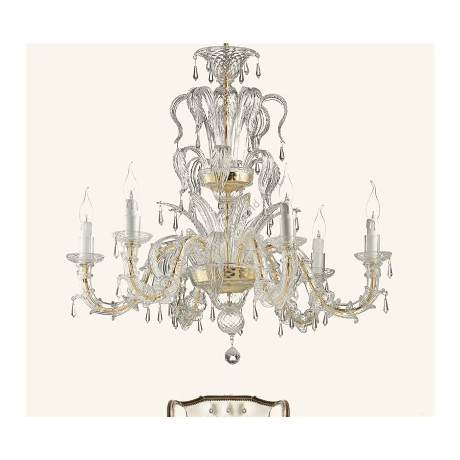 Kronleuchter aus transparentem Muranoglas mit Asfour®-Anhängern. Beleuchtungselement, das das Licht mit großer Wirkung in die Umgebung streut und eine warme und einladende Atmosphäre schafft.
