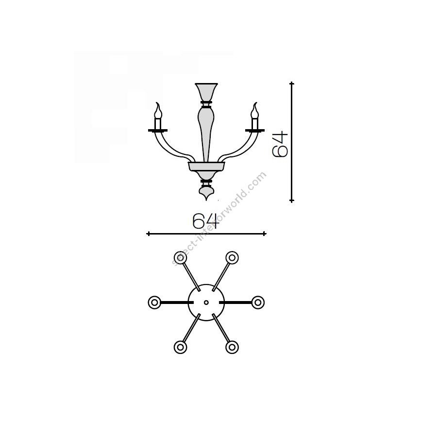 Glühbirnen: 6XE14X40w| Abmessungen (HxBxT): | cm: 64x64 / inch: 25.2"x25.2" |