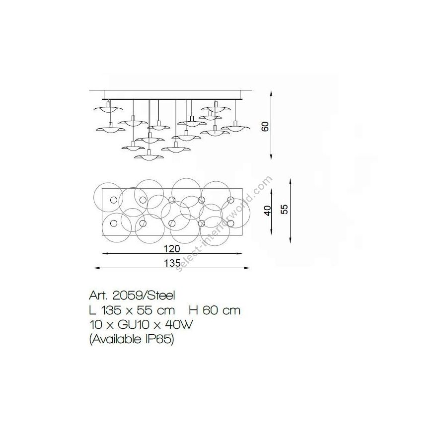 Leuchtmittel: 10 x GU10 x 40 W (Leuchtmittel nicht im Lieferumfang enthalten)Gewicht: 30 kg
