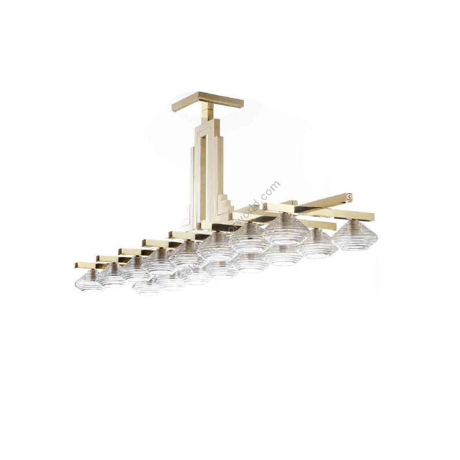 Rechteckiger Kronleuchter aus Messing und italienischem Kristall. Beleuchtungselement, das das Licht mit großer Wirkung in die Umgebung streut und eine warme und einladende Atmosphäre schafft.