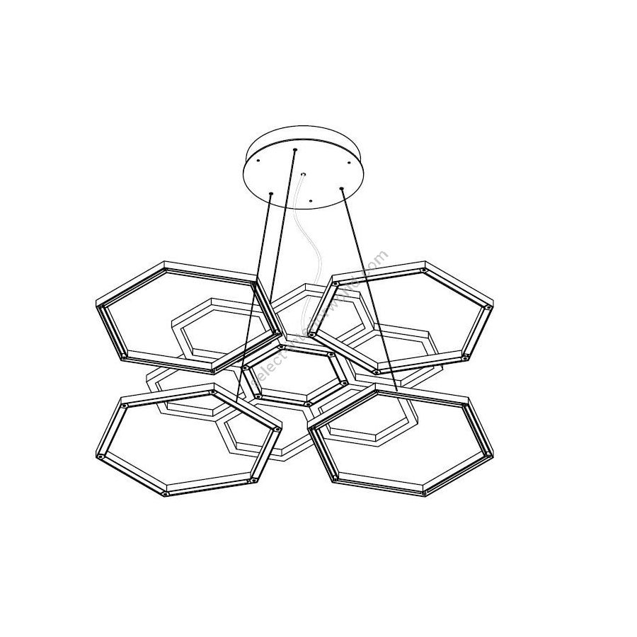 Kronleuchter aus Messing der Hexagon-Kollektion in Nickel-Ausführung und mit LED-Streifen. Beleuchtungselement, das das Licht mit großer Wirkung in die Umgebung streut und so eine warme und einladende Atmosphäre schafft. Nur in den Ausführungen SGB Soft Gold gebürstet oder NB Nickel gebürstet oder lackiert erhältlich.