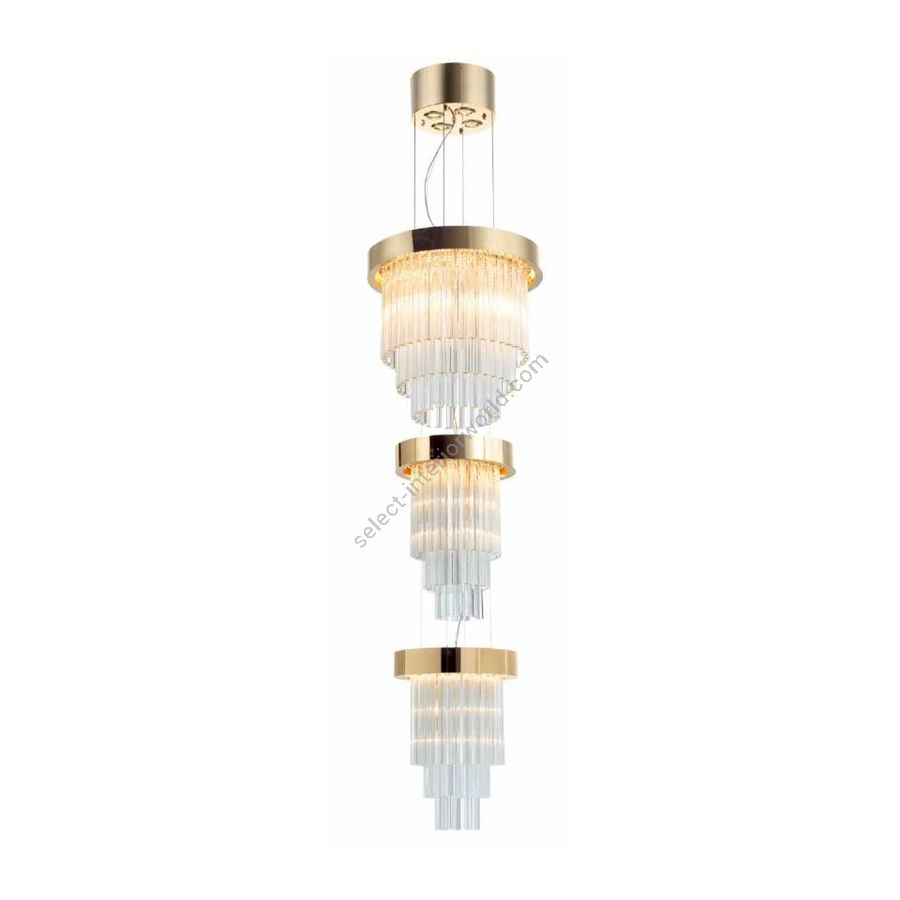 Kronleuchter „Ring Collection“ mit dreieckigen Gläsern. Beleuchtungselement, das das Licht mit großer Wirkung in die Umgebung streut und eine warme und einladende Atmosphäre schafft.