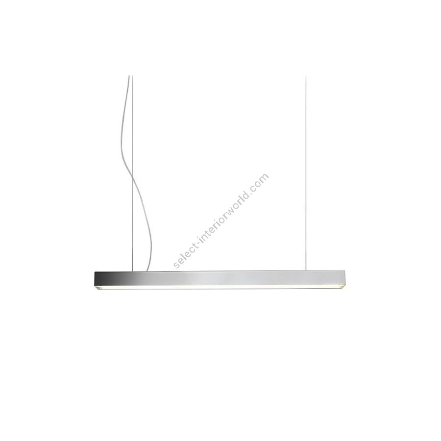 Polierte quadratische Metallleiste aus Nikel mit LED-Beleuchtung und Polycarbonat-Diffusor - LED-Streifen 17 W/m (insgesamt 34 W – 1750 Lumen) + interne Stromversorgung der Leiste, Stahlkabel an der Decke. Beleuchtungselement, das das Licht mit großer Wirkung in die Umgebung streut und eine warme und einladende Atmosphäre schafft.