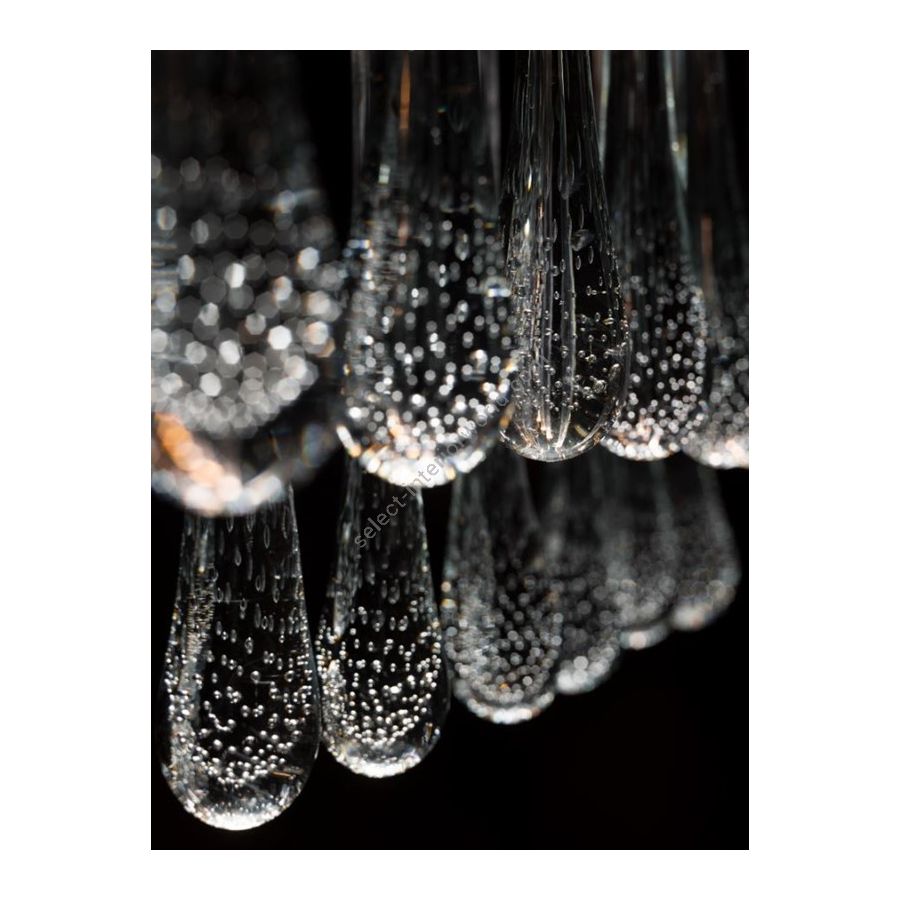 Zeitgenössischer Kronleuchter mit Muranoglas-Tropfen und LED-Beleuchtung. Beleuchtungselement, das das Licht mit großer Wirkung in die Umgebung streut und eine warme und einladende Atmosphäre schafft.