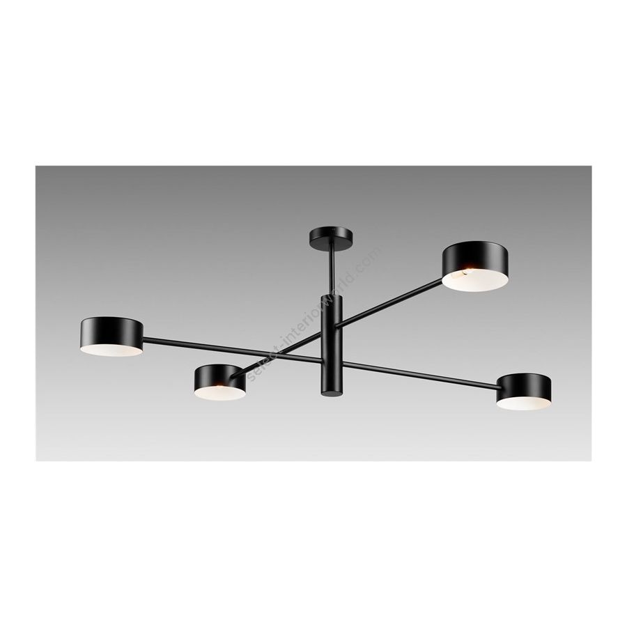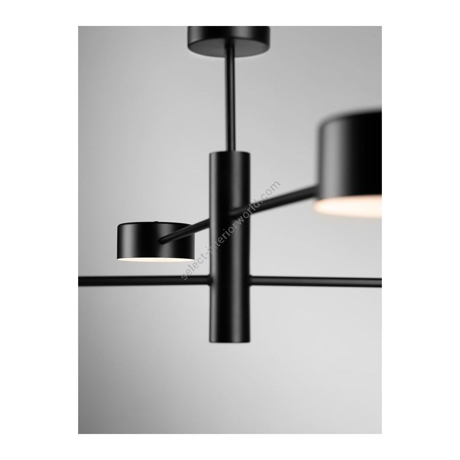 A sleek pendant chandelier with a central metal structure and four symmetrically arranged linear arms. The matte black finish makes it perfect for modern spaces such as kitchens and living areas, providing elegant and balanced lighting.