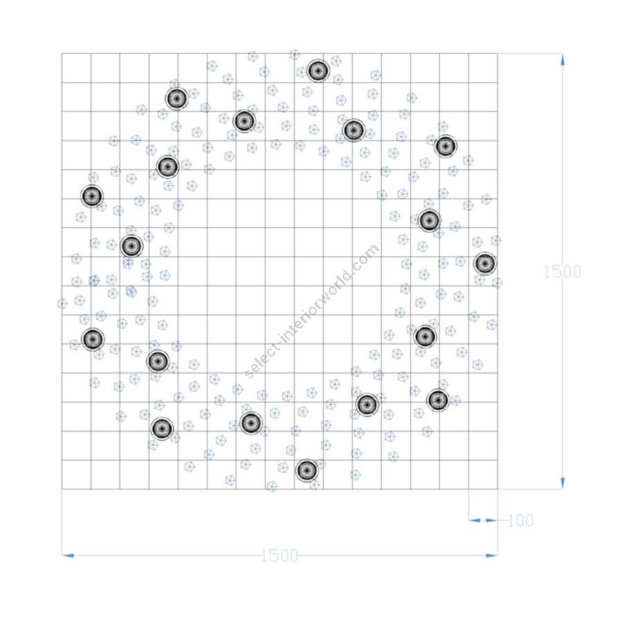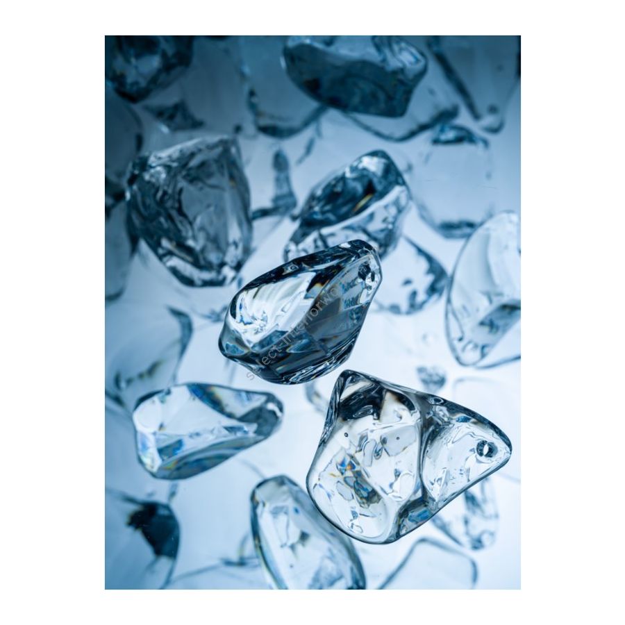 Ice effect chandelier with spiral shape. Composed of 200 elements. The chandelier includes 200 ice cubes and 200 steel cables with relative cable lock. Not included spot. To be fixed directly to the ceiling.