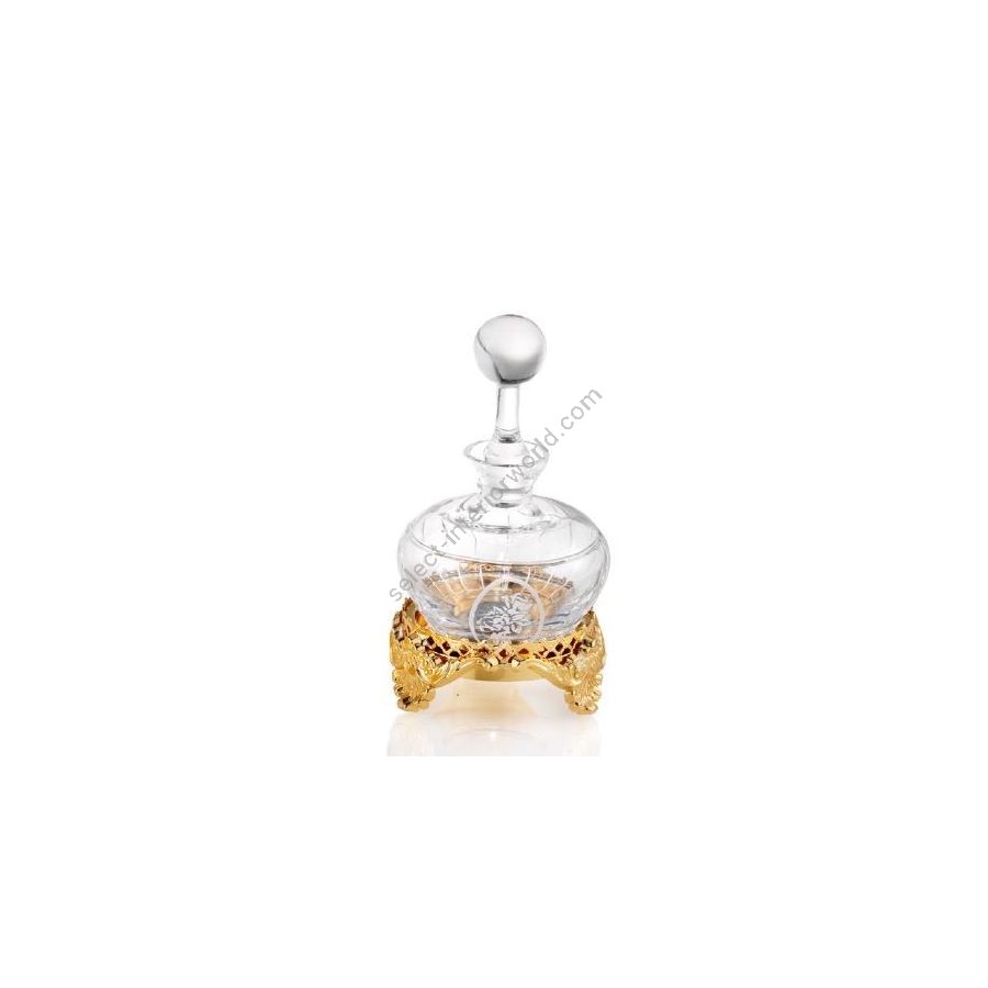 Mit einer Rose besetzte Parfümflasche aus handgeschliffenem italienischem Kristall mit 24 % Pb und einer Gravur in mattem Rosa.
