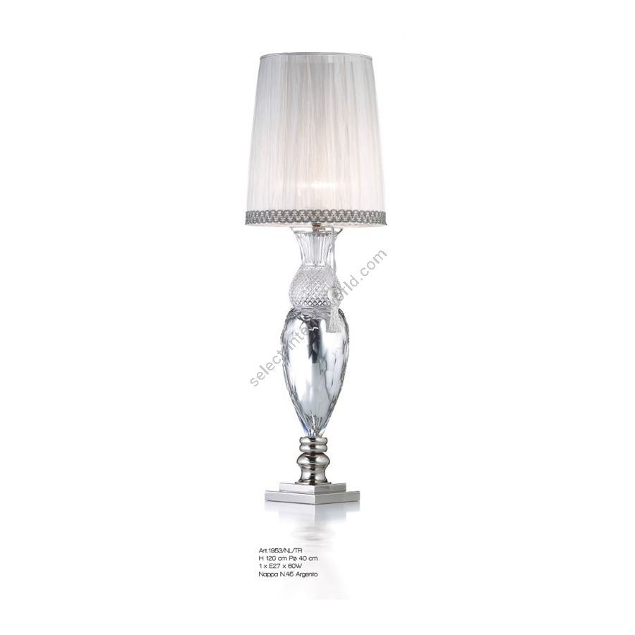 Tischlampe aus klarem und silbernem Florentiner Kristall (Quaste N45 nicht im Lieferumfang enthalten). Beleuchtungselement, das das Licht mit großer Wirkung in die Umgebung streut und eine warme und einladende Atmosphäre schafft.