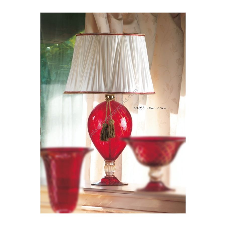Tischlampe aus Muranoglas mit Golddekor. Lampenschirm inklusive. Quaste "Grossa oro" nicht im Preis inbegriffen. Beleuchtungselement, das das Licht mit großer Wirkung in die Umgebung streut und eine warme und einladende Atmosphäre schafft.