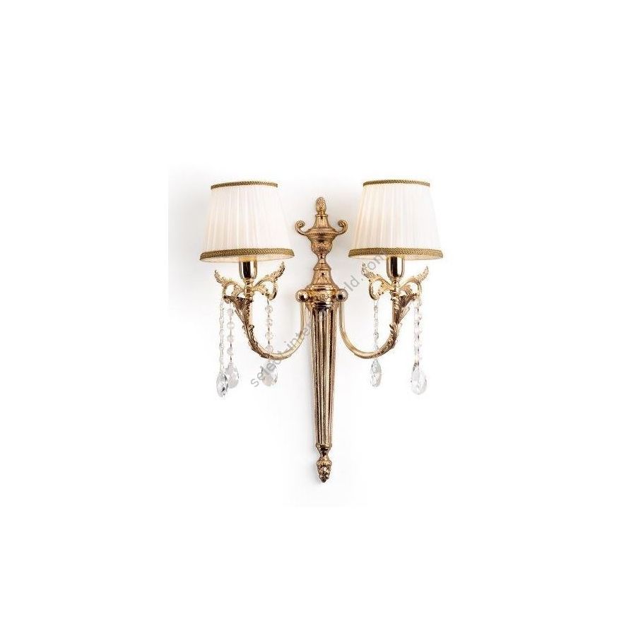 Wandleuchte aus Messingguss mit Lampenschirmen und Kristallanhängern. Beleuchtungselement, das das Licht mit großer Wirkung in die Umgebung streut und eine warme und einladende Atmosphäre schafft.