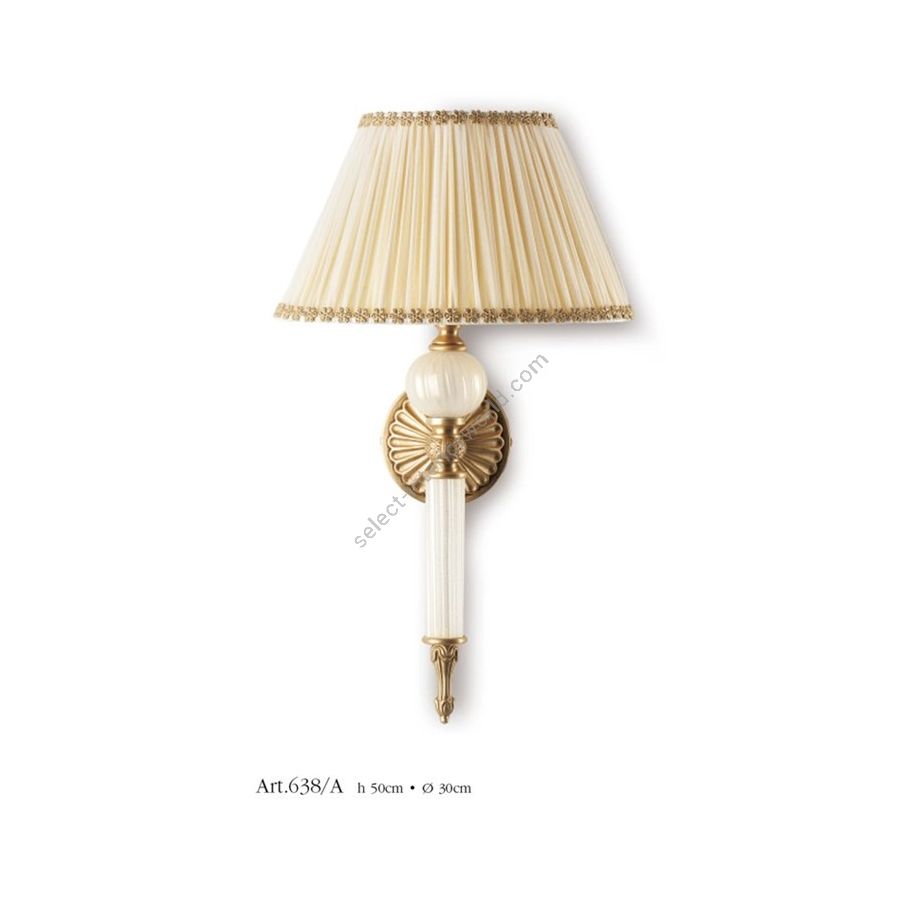 Wandlampe mit Elementen aus weißem und goldenem Muranoglas und Lampenschirm aus Stoff. Beleuchtungselement, das das Licht mit großer Wirkung in die Umgebung streut und eine warme und einladende Atmosphäre schafft.