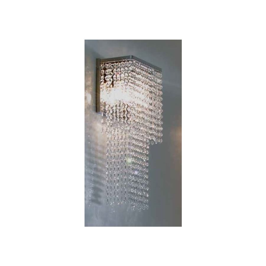 Wandleuchte mit klaren Asfour-Kristallen. Beleuchtungselement, das das Licht mit großer Wirkung in die Umgebung streut und eine warme und einladende Atmosphäre schafft.