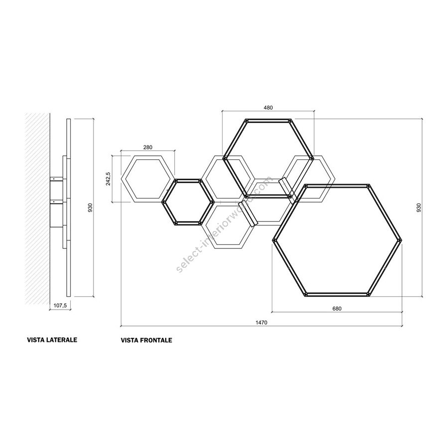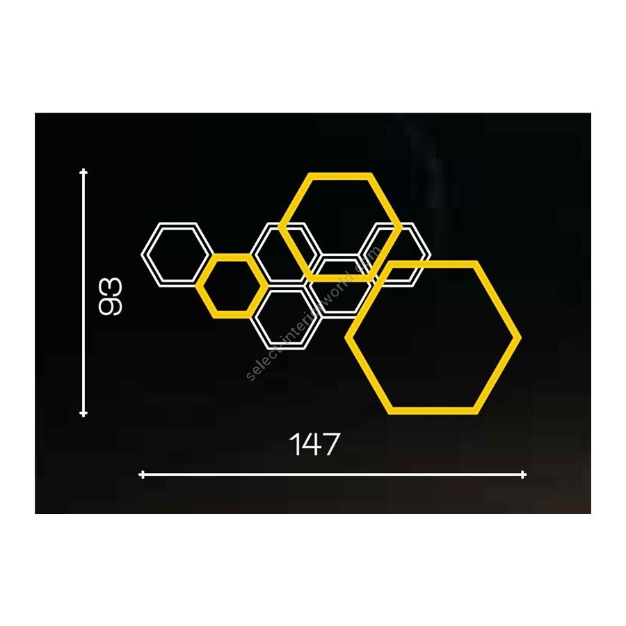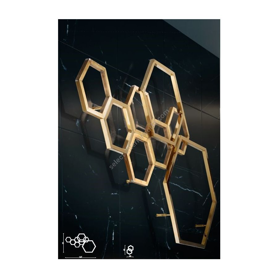 Wandleuchte aus der Hexagon-Kollektion aus Messingmetall mit LED-Streifen. Veränderbares Wandbefestigungssystem zur Aufnahme des Treibers, siehe technische Zeichnung. Beleuchtungselement, das das Licht mit großer Wirkung in die Umgebung streut und eine warme und einladende Atmosphäre schafft.
