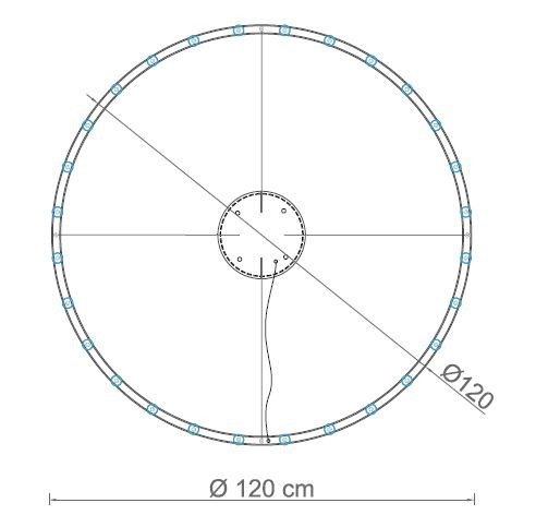 Size:D. 120 cm x H 45 cm ( steel cable ajustable 100 cm); Kg 25