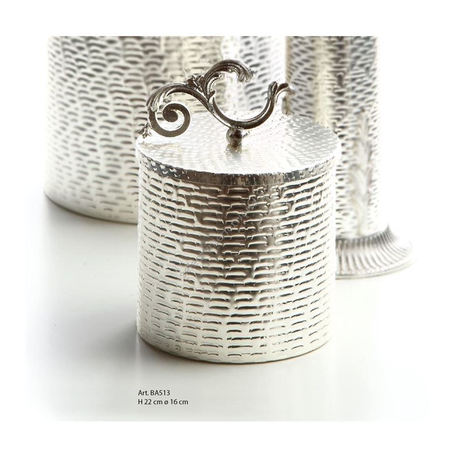 Schmuckschatulle aus gehämmertem Messing mit Deckel und Griff aus Messingguss. Funktionale Elemente, die ein äußerst elegantes, einladendes und hochwertiges Badezimmer schaffen.