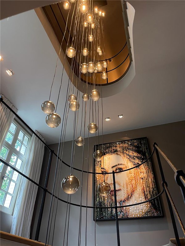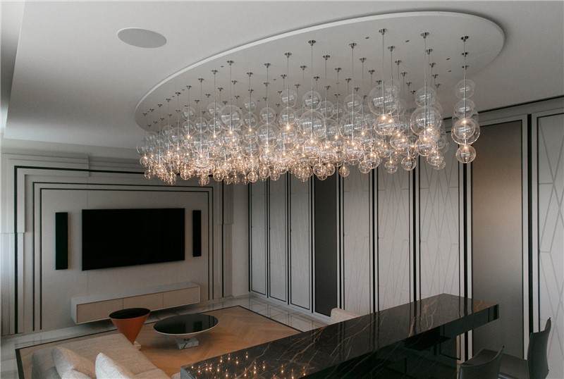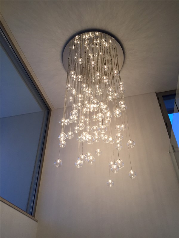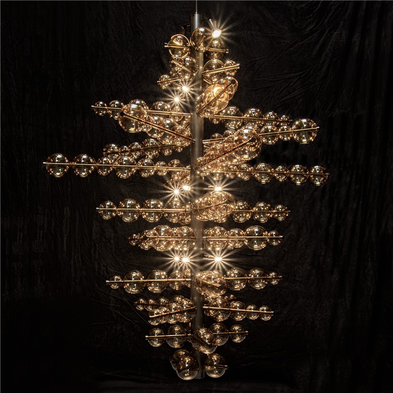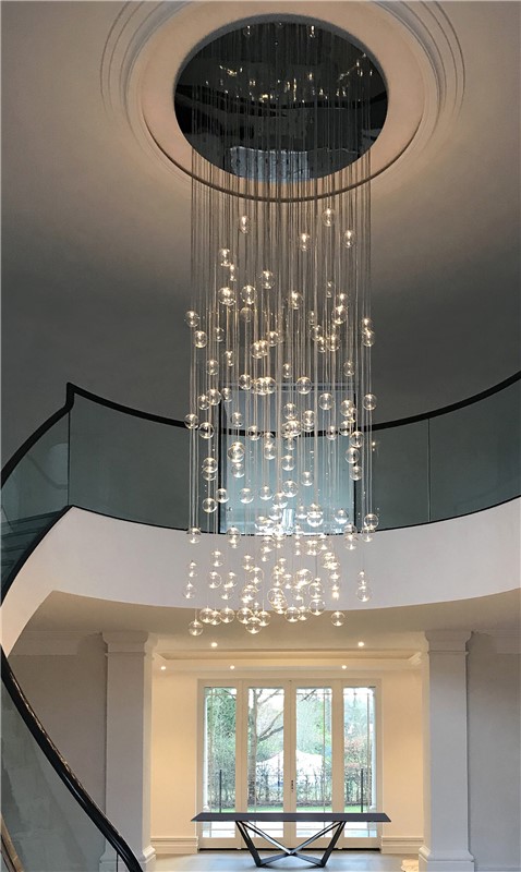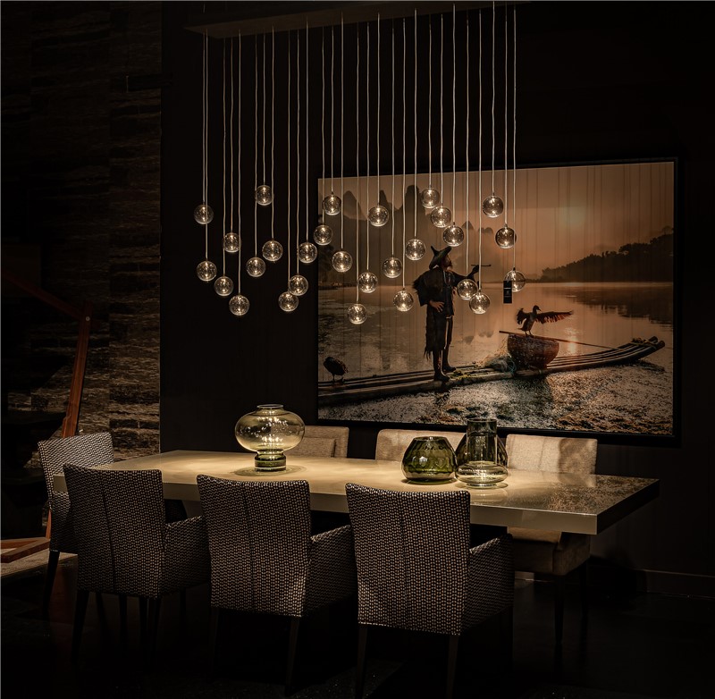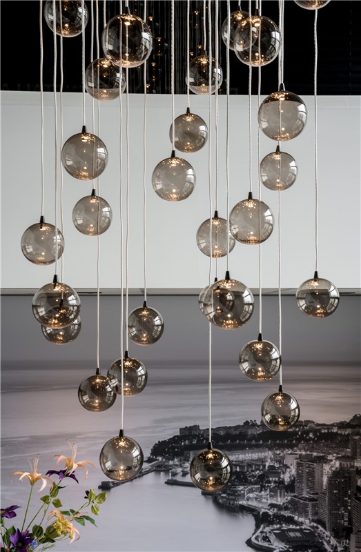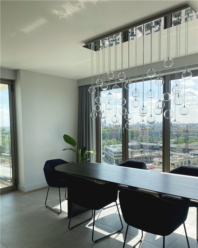 The Ballroom collection is inspired by the sight of a room full of individual dancers. The fixture is perfectly designed to illuminate a room, and add a playful character to a space. However, this luminaire also has the ability to provide a breathtaking element to a room, bringing light, air and atmosphere. The collection is available in various shapes. It can be adjusted in quantity, length and width to suit, for instance, the entry hall of a residence.