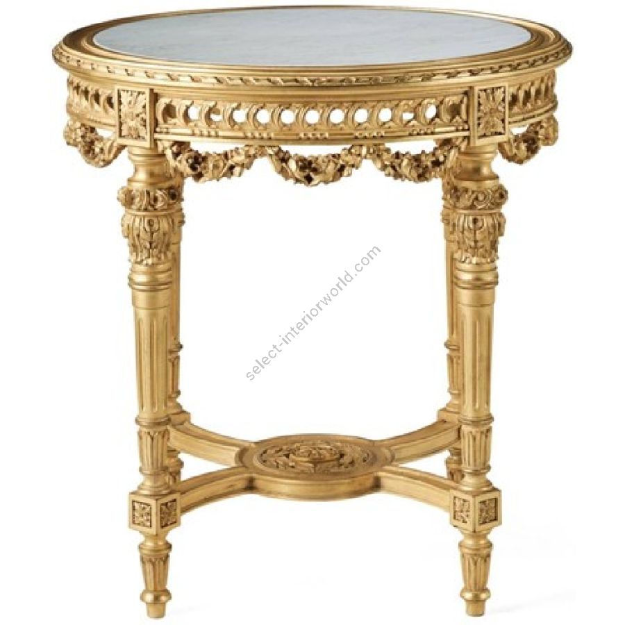 A stunning combination of gold leaf, applied manually, and precious White Namibia Rhino marble characterizes the Guirlande table. As a special feature, typical of the Guirlande line, a masterly crafted shoot of leaves, delicately enveloping the entire furnishing. Creativity and craftmanship at its finest.