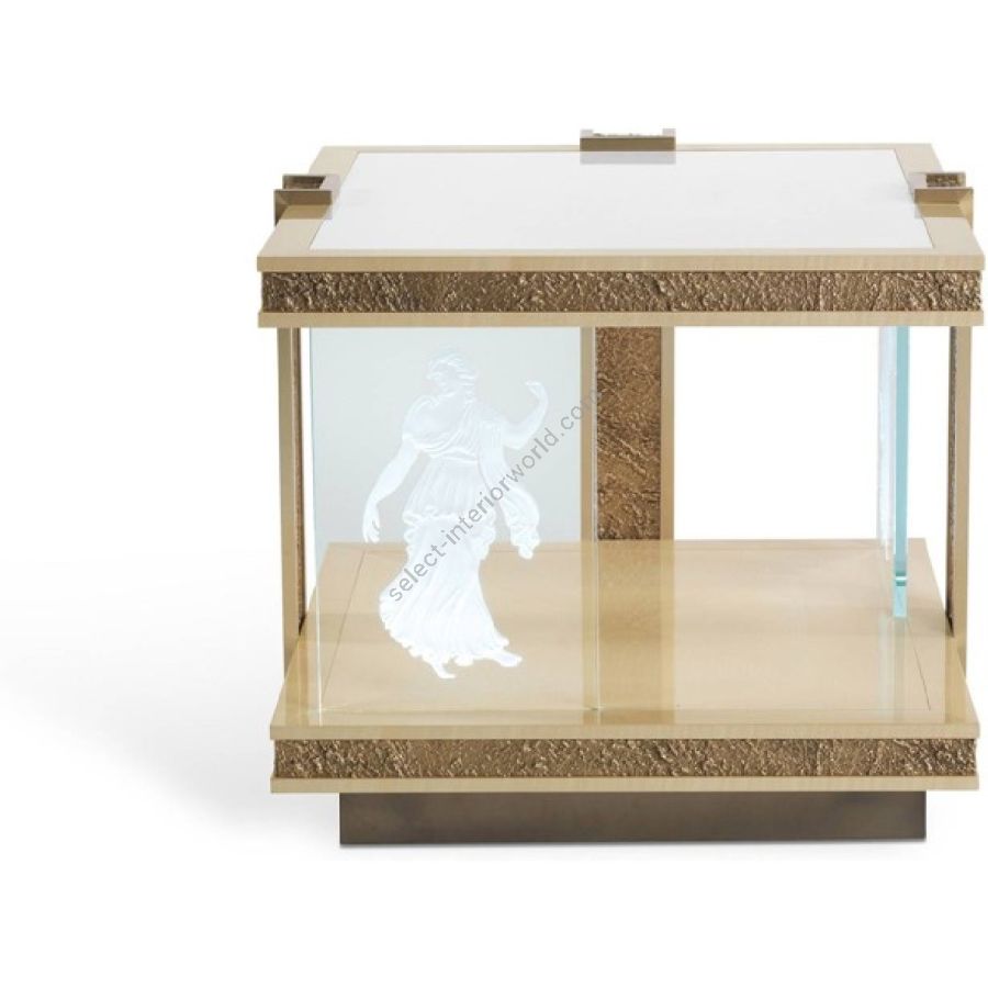 Characterized by sculptural shapes, the furniture of the Shinto line combine the essence of classic style with a contemporary allure. They are distinguished by an original combination of materials, including natural maple, precious marble and brass casting. The parts in brass castings, with their materic appeal, contrast with the shiny component in onyx or marble, enriched with refined decorations in gold leaf. All the pieces are characterized by an important artisanal component: the manufacturing mixes the use of experimental techniques with traditional methods handed down for centuries.