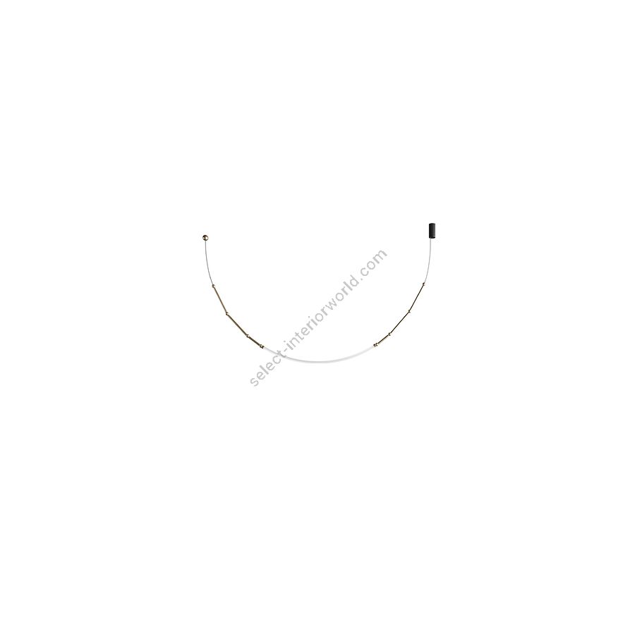 Die Lampen dieser Kollektion wechseln zwischen zylindrischen Stäben und kleinen Kugeln aus eloxierter Bronze oder schwarzem Aluminium, die wie Perlen in einem Ring auf einem Draht angeordnet sind, der LEDs trägt, die in einem transparenten, flexiblen Silikonschlauch eingeschlossen sind.