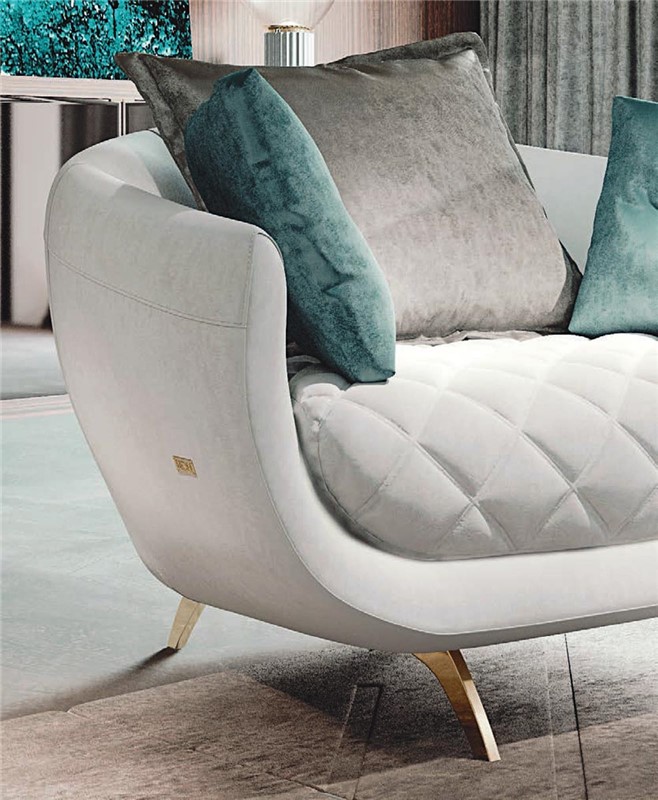 Completely removable sofa. Structure in fir wood and poplar multi-layer. Padding made from non-deformable polyurethane foam with different levels of density. The feather backrests and side cushions are standard. Seat cushion with springs and SOFT-SYSTEM technology. The stainless steel sleds color chrome shiny or matt are included in price. Instead, for other metal finishes, please consider the increase according a price list.