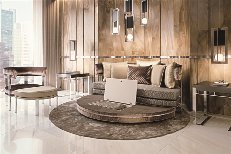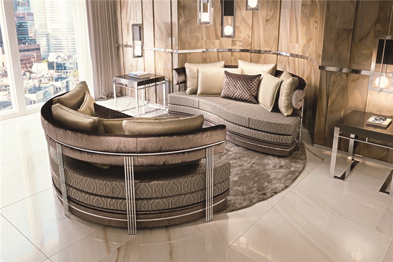 Tecnhical Description Sofa with a partially removable cover, the structure of poplar and fir plywood. The mattresses are made of non-deformable high-density polyurethane with 2 cm of memory foam in the upper part and covered with a removable and washable anti mite and anti-allergic shell. The large and central backrests are padded with goose feather, while the side pillows are in Memory. The 5 metal vertical feet, the base below and the backrest made of polished or satin steel are standard, for different metal finishing , consider the increase according a price list. The sheet and pillowcases in 100% washable cotton sateen are standard. The quilted circular duvet is available on request of the client, considering an extra charge. Data sheet