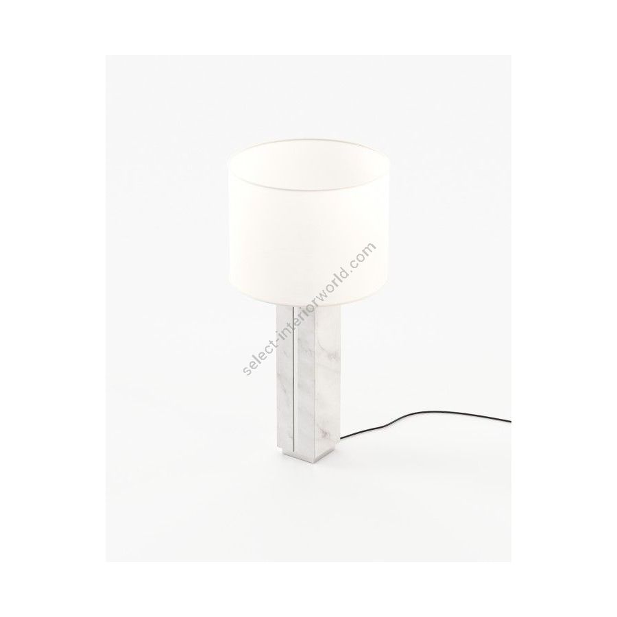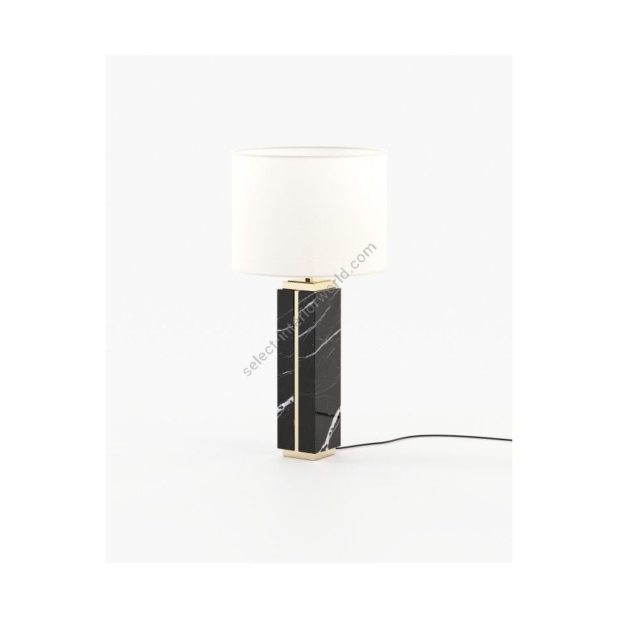 Jack table lamp is a majestic tall table lamp handmade in marble and featuring metallic details, ideal for bedrooms, entrance halls, and living rooms.