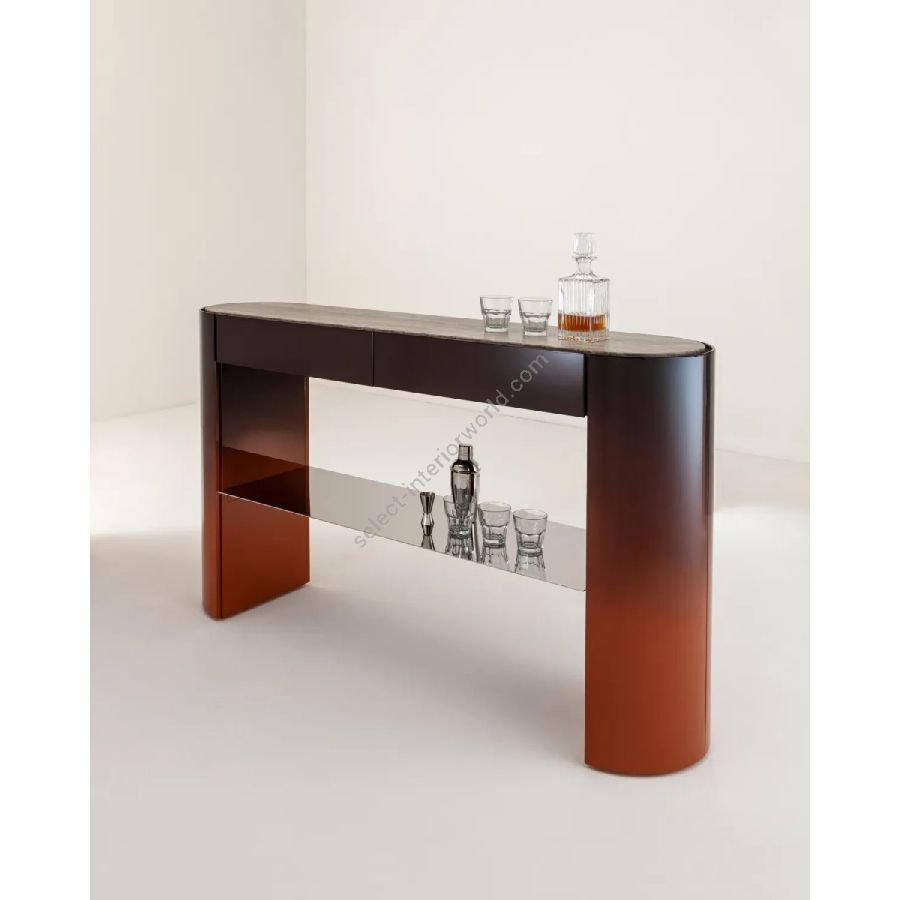 Available in plain, dyed, matte brushed lacquered, glossy lacquered, and glossy shaded lacquered wood. Customizable top in marble or wood.