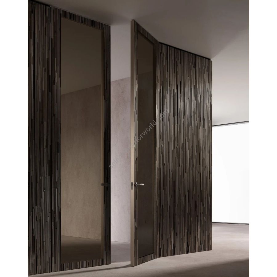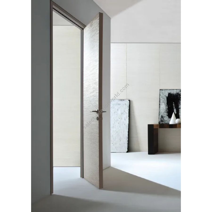 Available in custom sizes, with 'Slim' jamb, with central panel in glass, and integrated into boiserie systems. Available in all wood essences from the collection, and in aniline-dyed oak in all RAL/NCS colours.