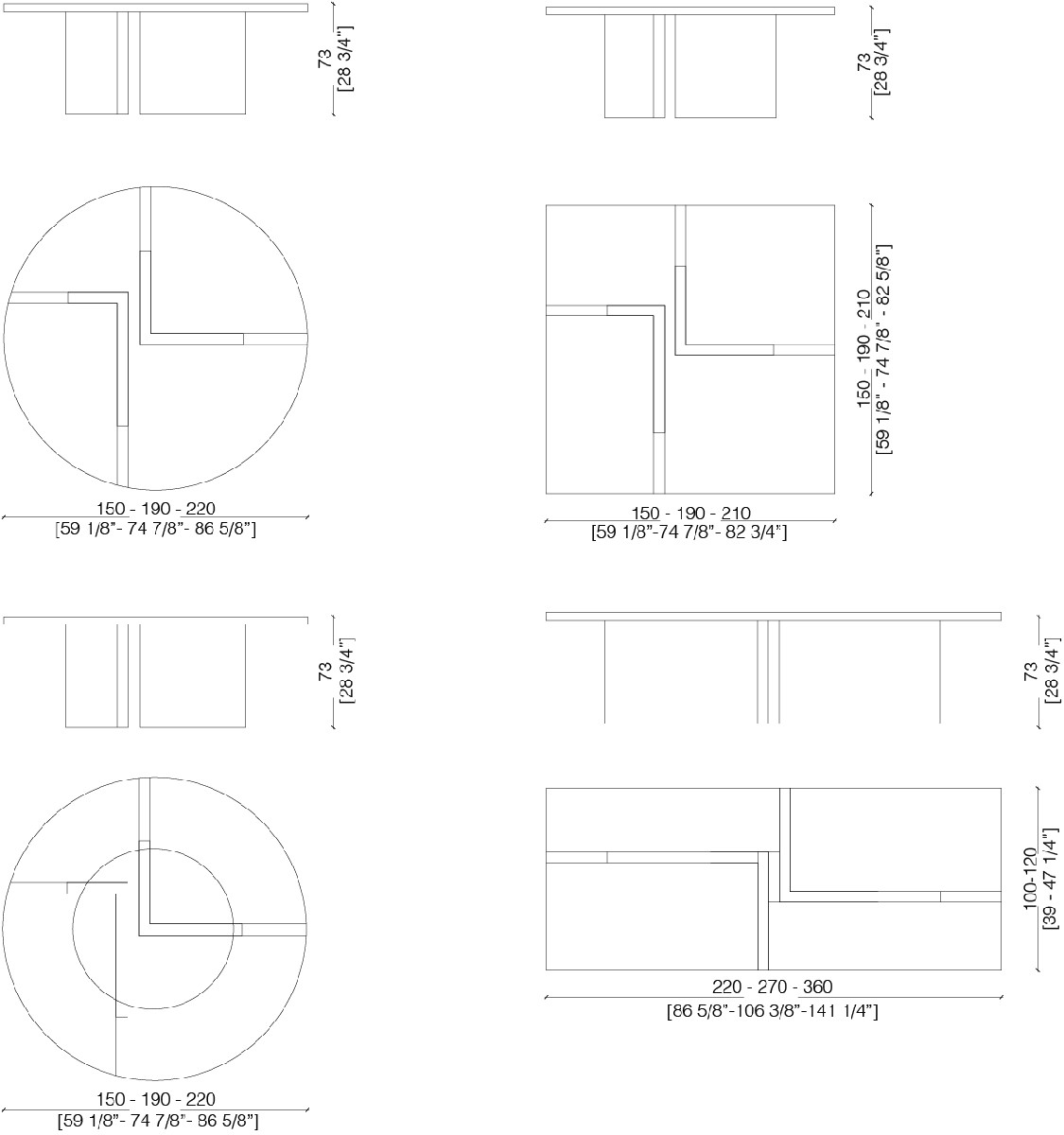 Available in the square, rectangular or round version in various sizes, and with integrated Lazy Susan.