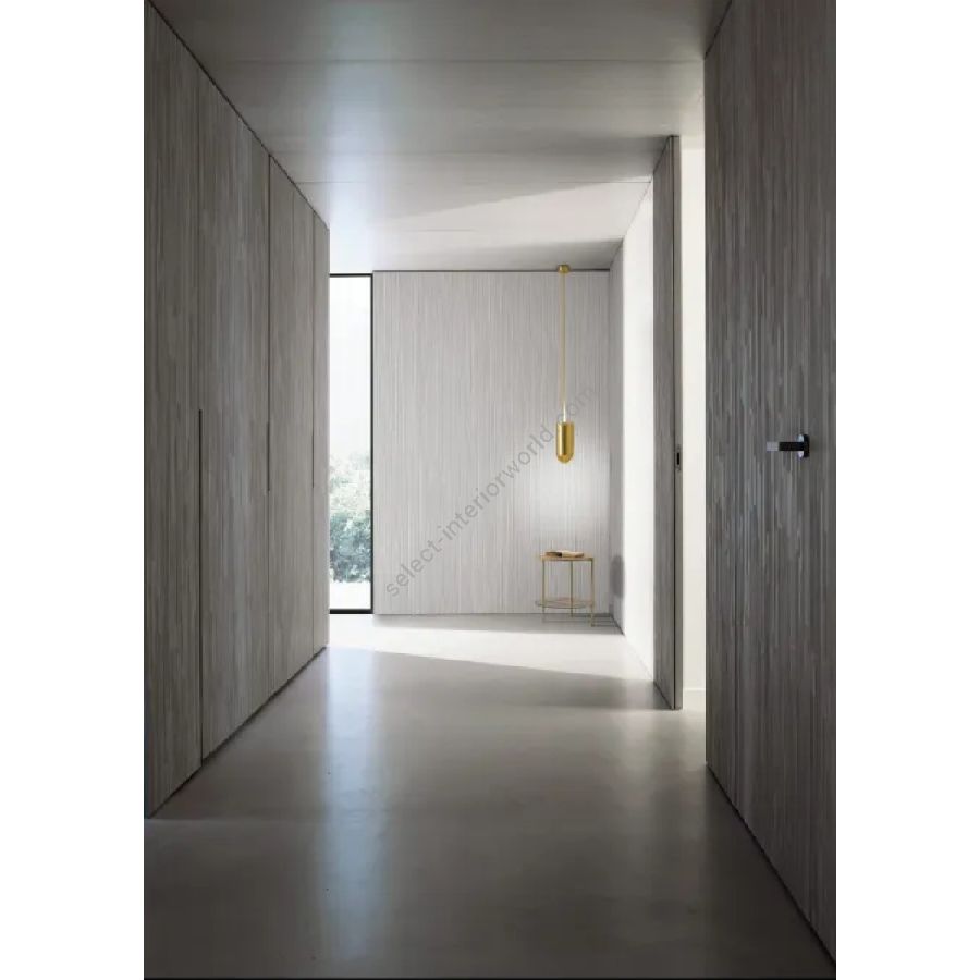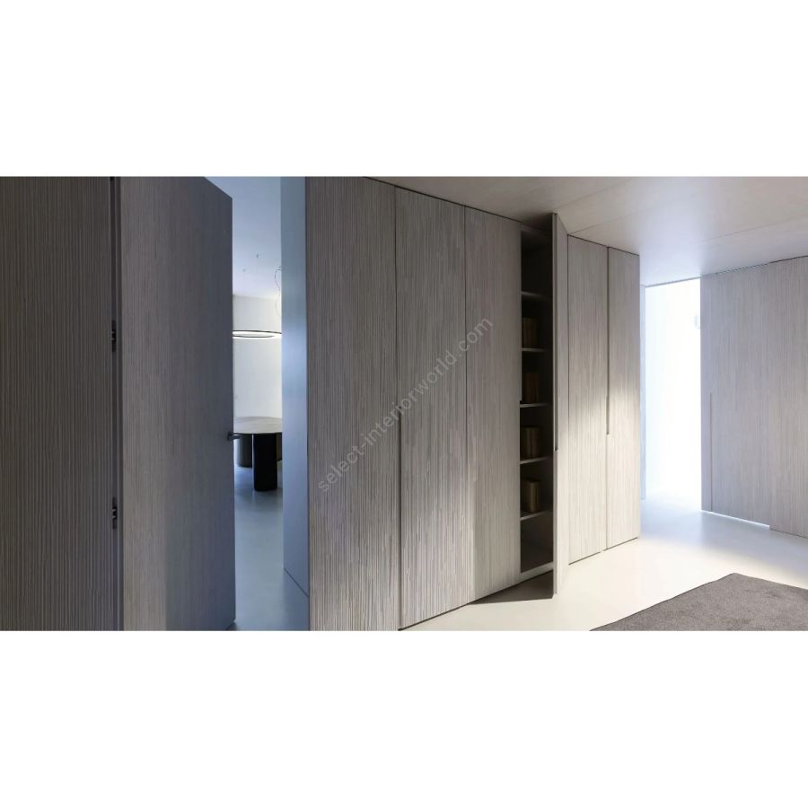 Customizable in all the essences of the collection and aniline dyed in all RAL colours, the Decor wardrobe system is available in combination with integrated wall panels and doors.