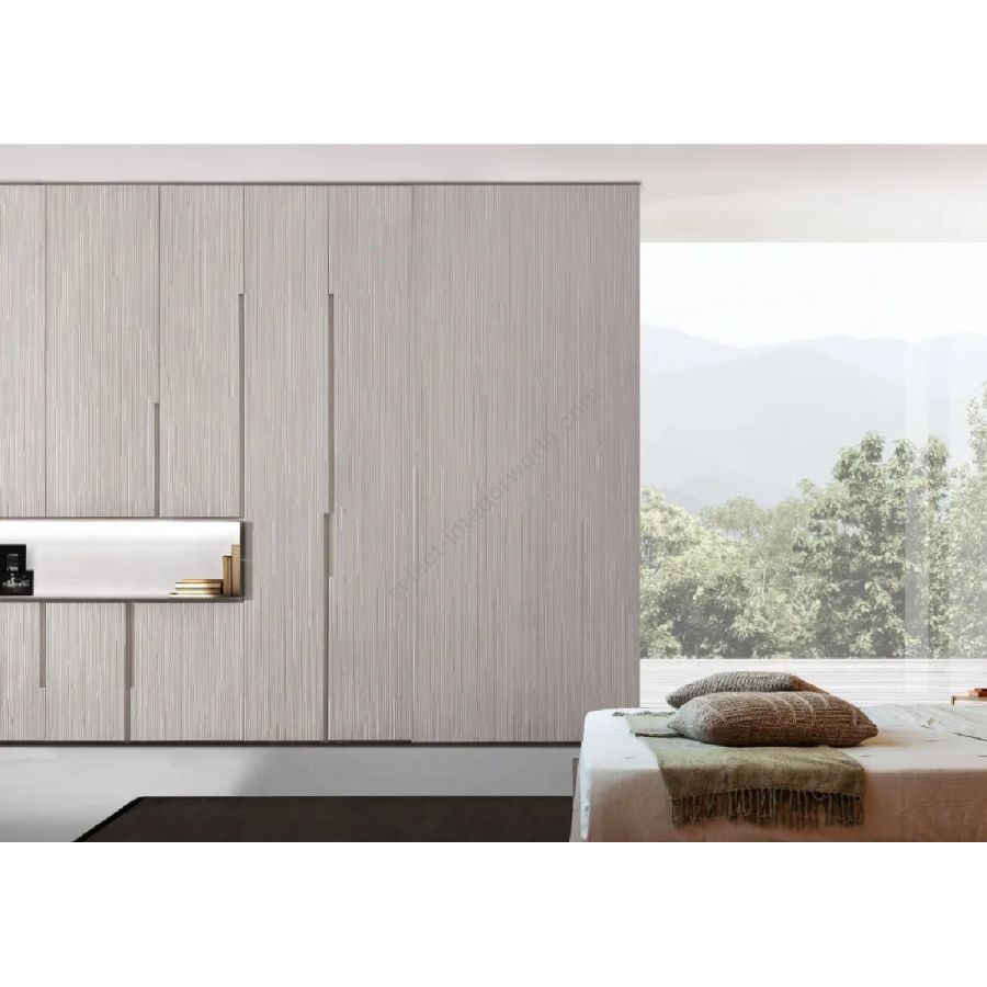 Made to measure wardrobe system with Decor carving, customizable in size and finishes. Available tailor-made with customizable accessories, equipment and internal finishes, and with integrated LED lighting.