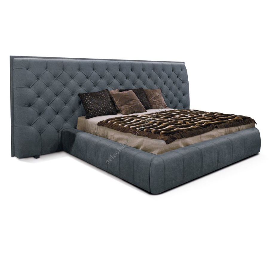 Gestell aus Buchensperrholz, bedeckt mit Polyurethanschaum in mehreren Dicken. Die umlaufende Bordüre wird von Hand gefertigt, passend zur Polsterung oder in verschiedenen Materialien der Musterauswahl. Die Rückenlehne hat ein „Capitonnè“-Muster, mit Knöpfen in Unifarbe oder mit Swarovski-Kristallen. Die vom Kopfteil getrennte Plattformbasis ist mit Metalleckstücken zusammengebaut, die auch eine einfache Montage und Anpassung der Bettfederhöhe ermöglichen, um sie 10 cm unter der Bettkante jeweils 2 cm abzusenken. Dadurch kann jede Art von Bettfeder verwendet werden , und ermöglicht auch die Höhenverstellung der Matratzenebene. Die Basis bietet Platz für: - eine feste Bettfeder mit Holzdauben, - die Sommier-Federbasis für bündig mit der Basis abschließende Lattenroste, - nur für das Queen-/King-Size-Modell einen praktischen Aufbewahrungsbehälter mit zwei Mechanismen, um die Matratzenbasis zu bringen eine ebene Stellung. Der Boden des Behälters ist aus Schichtholz mit seidiger Oberfläche. Aufgrund des speziellen Herstellungsverfahrens des Kopfteils sind Stoff- oder Lederbezüge nicht abnehmbar. Es ist möglich, nur die Rückseite der Rückenlehne mit Samt bezogen zu haben, ohne Steppung, abgestimmt auf die Farbe des Leders.