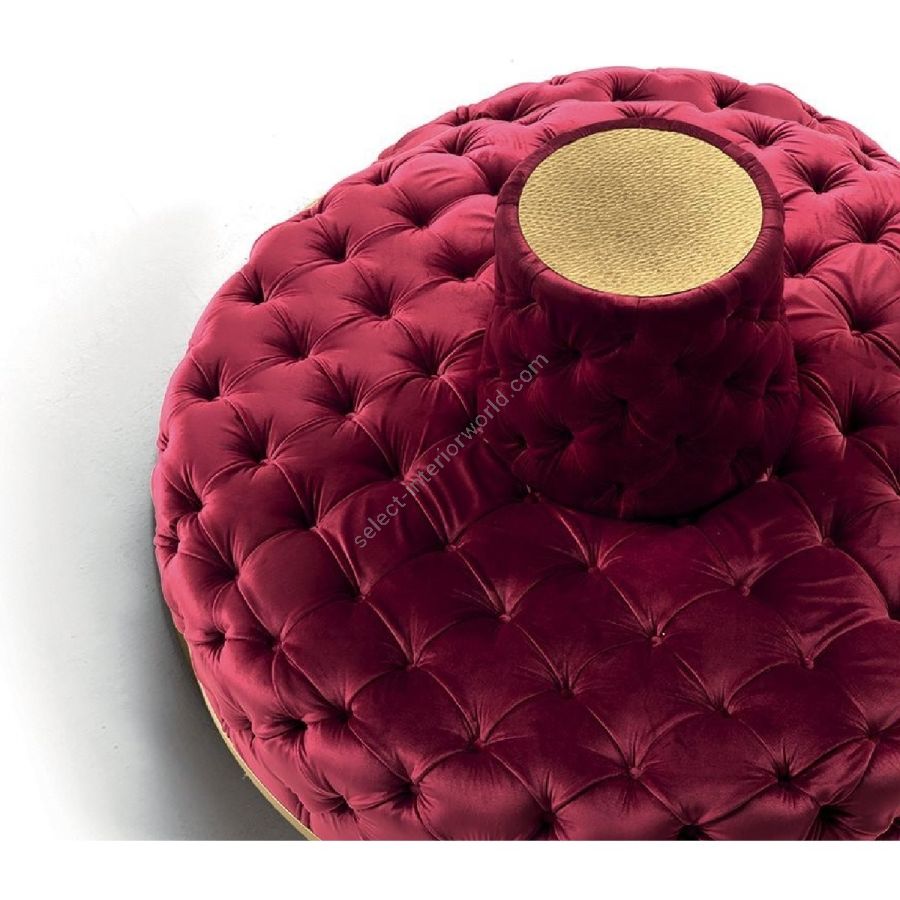 Ein einzigartiges Stück mit einer ungewöhnlichen und interessanten Form, ein Capitonnè-Pouf, der sicherlich nicht unbemerkt bleiben wird. Die Mitte dieses runden Hockers ist erhöht und oben flach, um eine Nutzfläche zu bieten.