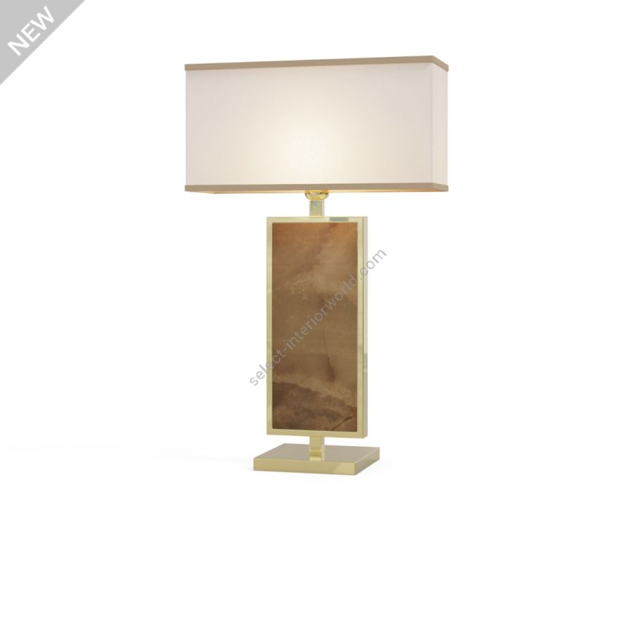 Diese Leuchtkörper wurden mit dem Ziel entworfen, Raffinesse und ästhetische Schönheit zu vereinen und passen perfekt zu Räumen und Gemeinschaftsbereichen mit zeitgenössischem Design. Dieses Tischlampenmodell besteht aus einem rechteckigen Sockel aus Messing mit Steinzeugdetails.