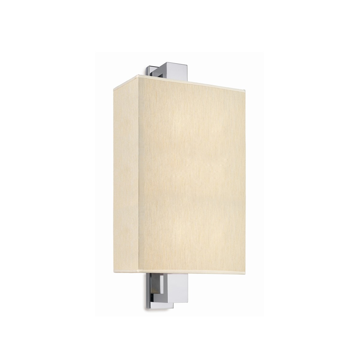 Equipped with a square base, the wall lamp model in brass with a polished nickel finish has a semi-cylindrical lampshade in ivory pleated fabric. Ideal for lighting bedrooms and living areas.