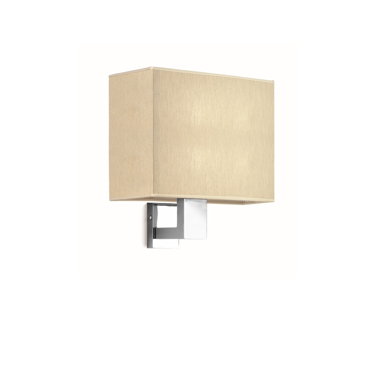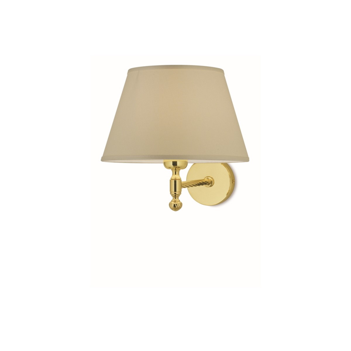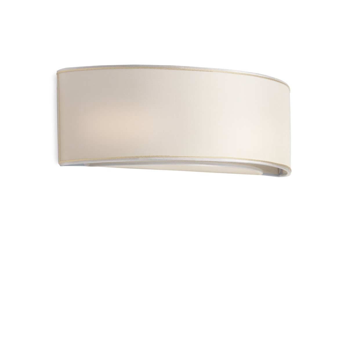 This article, perfect for corridors and bedrooms, is composed of brass details in a light gold finish and a semi-cylindrical lampshade in ivory fabric.