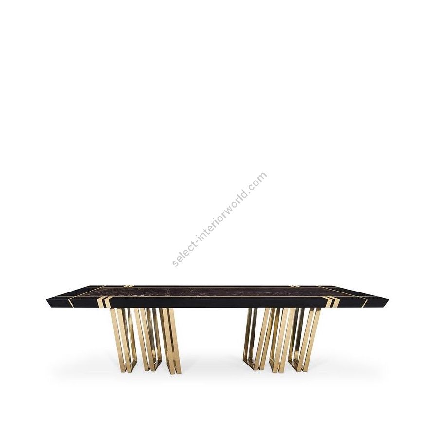Inspiriert von der griechischen Mythologie verherrlicht der Apotheosis-Esstisch Design und Innovation. Die Beine aus poliertem Messing sorgen für einen ungewöhnlichen und schicken Effekt und tragen eine Tischplatte aus Marmor und Holz. Diese Kombination und Gestaltung spiegeln die Erhebung irdischer Elemente zu einer gottähnlichen Gestalt wider und definieren Perfektion. Mit seiner exquisiten Handwerkskunst ist dieser Marmor-Esstisch die ultimative Luxus-Ergänzung für jedes moderne Esszimmer.