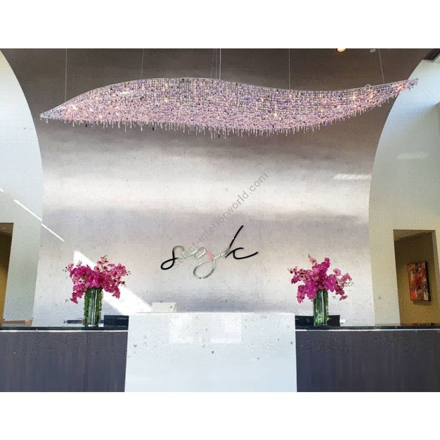 Reminiscent of waves on a transcendentally calm ocean, Vague represents the next generation of Manooi chandeliers and is a precursor to the Crystalight Collection. With its dynamic shape and sinusoidal appearance, Vague demonstrates the true potential of crystals and showcases Manooi expertise at its finest. It can be installed on its own or in different sized clusters.