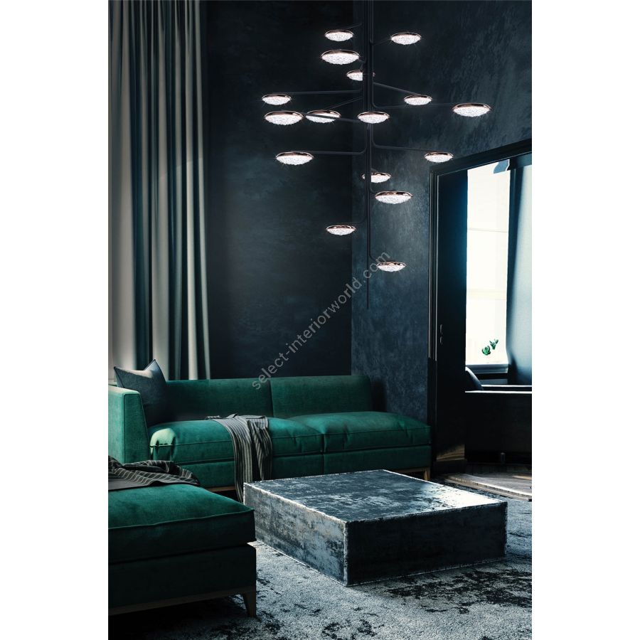 With the play of asymmetry and harmony, Origo Star was further elaborated to create Origo Pulsar – unique and inimitable crystal creation, redefining the idea of a crystal chandelier as it is known. The combination of contemporary materials with the classical view of crystals creates an exclusive look of an interior.