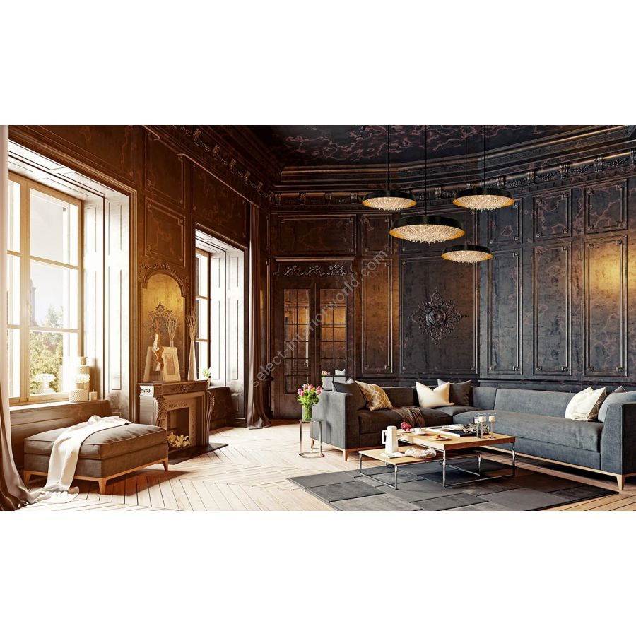 Comprising a myriad of crystals in a circular work of art, Tondo boosts the Personal Universe Collection. Here, Manooi’s crystal chain expertise is combined with contemporary design. Available in three versions—as a floor lamp, table lamp or a suspended chandelier. Tondo is the first choice for state-of-the-art loft conversions and boutique hotels alike, but it also can give a luxurious feel to personal spaces, too.