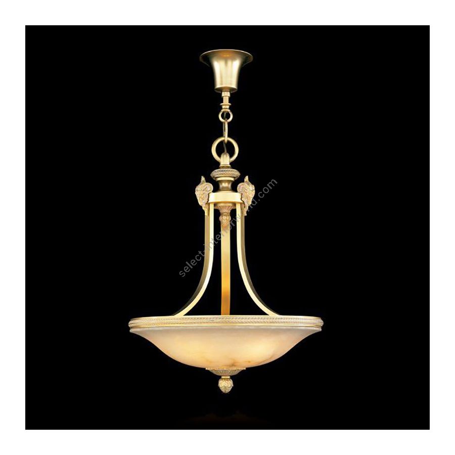 Die Pendelleuchte besteht aus Bronzeguss und Alabaster.