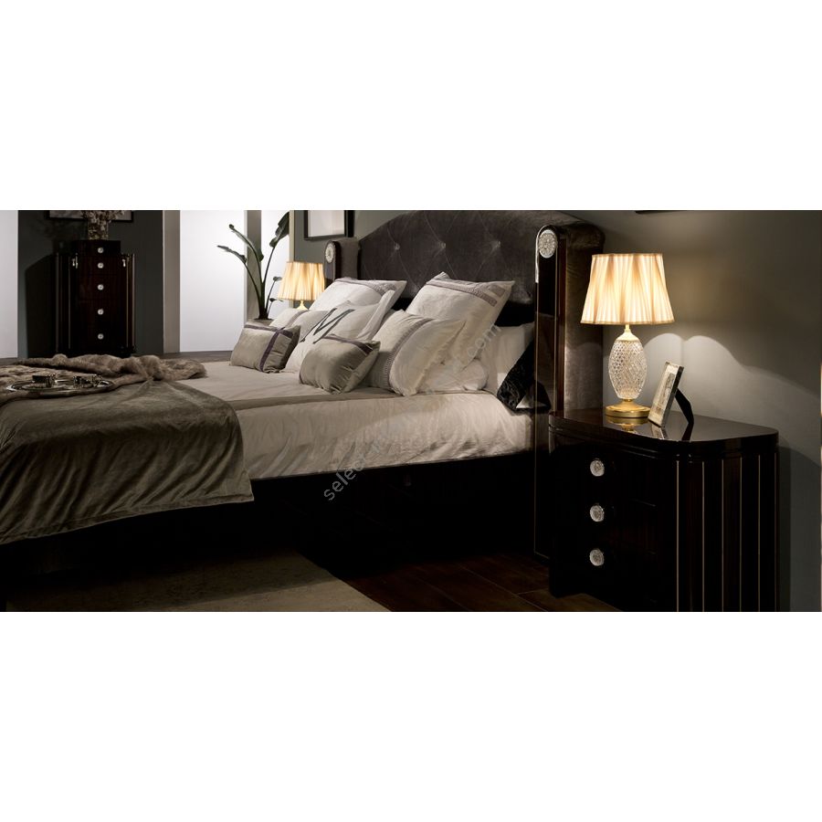 Makassar- und Bergahornfurniere, venezianisches Glas und Messingakzente.