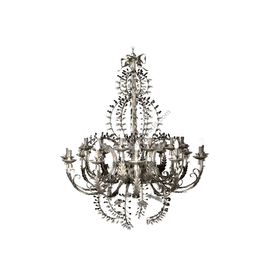 24 lights chandelier in wrought iron with clear Bohemian crystal and Murano glass