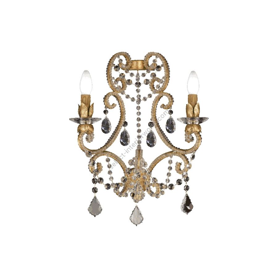 2 lights wall lamp in wrought iron with clear Bohemian crystal and clear pearl banding