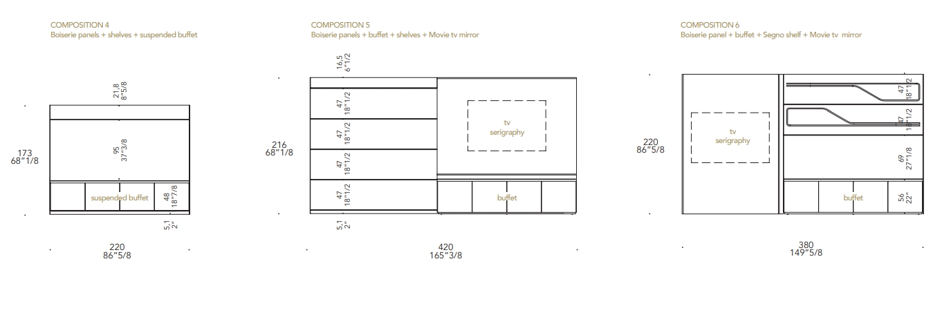- Boiserie mit Mirage Buffet oder Monolite Buffet Low als Aufbewahrungsmöbel, aus lackiertem Glas oder aus MarmoReflex