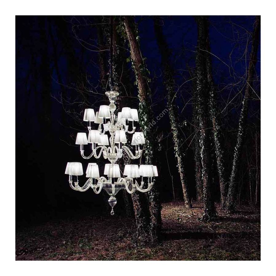 Chapeau ist ein klassischer und unverzichtbarer Kronleuchter. Er wird aus hochwertigen Materialien handgefertigt. Dieser Kronleuchter aus Muranoglas ist mit handgefertigten Lampenschirmen versehen und in vielen verschiedenen Farben, Größen und Anzahlen erhältlich.