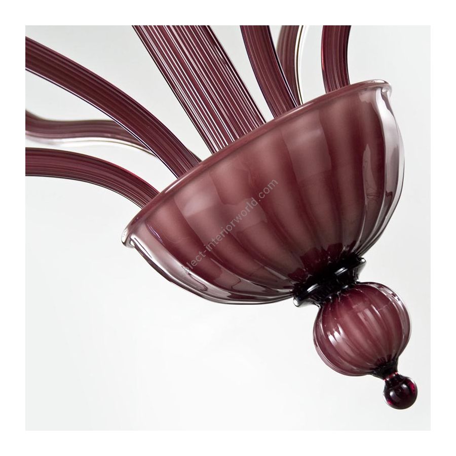 Der venezianische Kronleuchter aus geblasenem Glas aus Samt ist vom Art-Deco-Stil inspiriert. Es zeichnet sich durch lange Arme aus, die nach oben gebogen sind, und durch ummanteltes farbiges Glas, das dem Material eine besondere Textur verleiht.