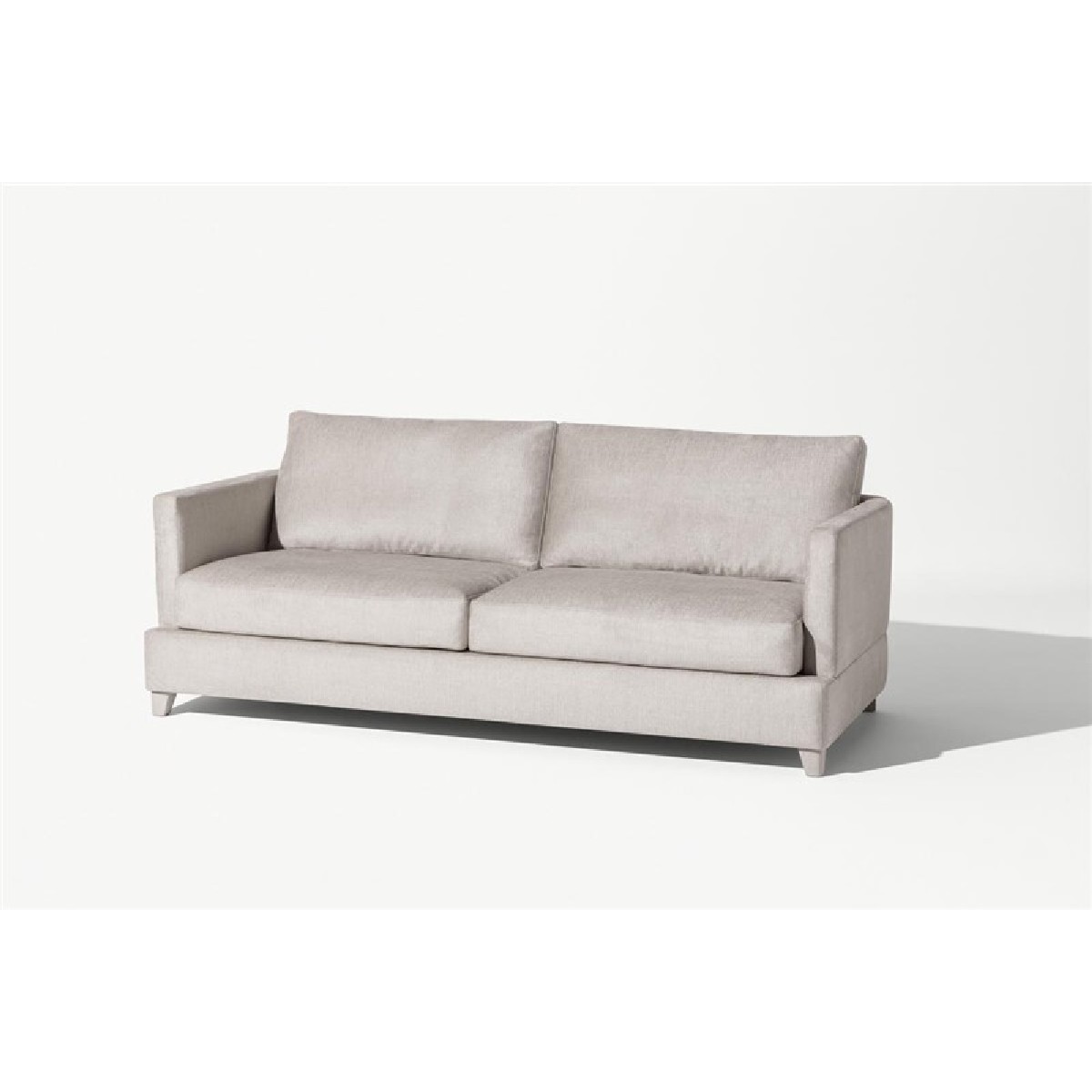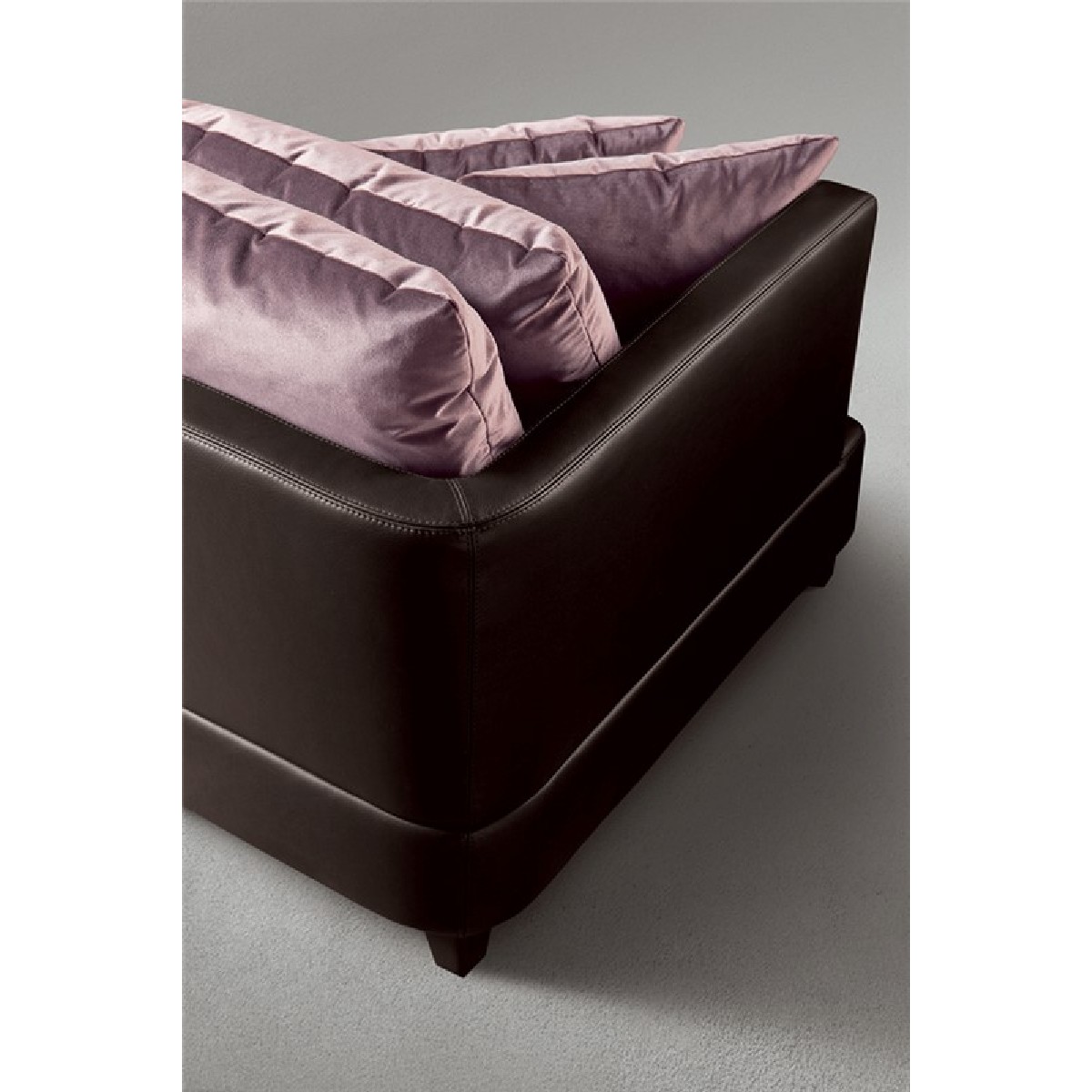 Sofa’s feet consist of solid beech wooden in leather covering.