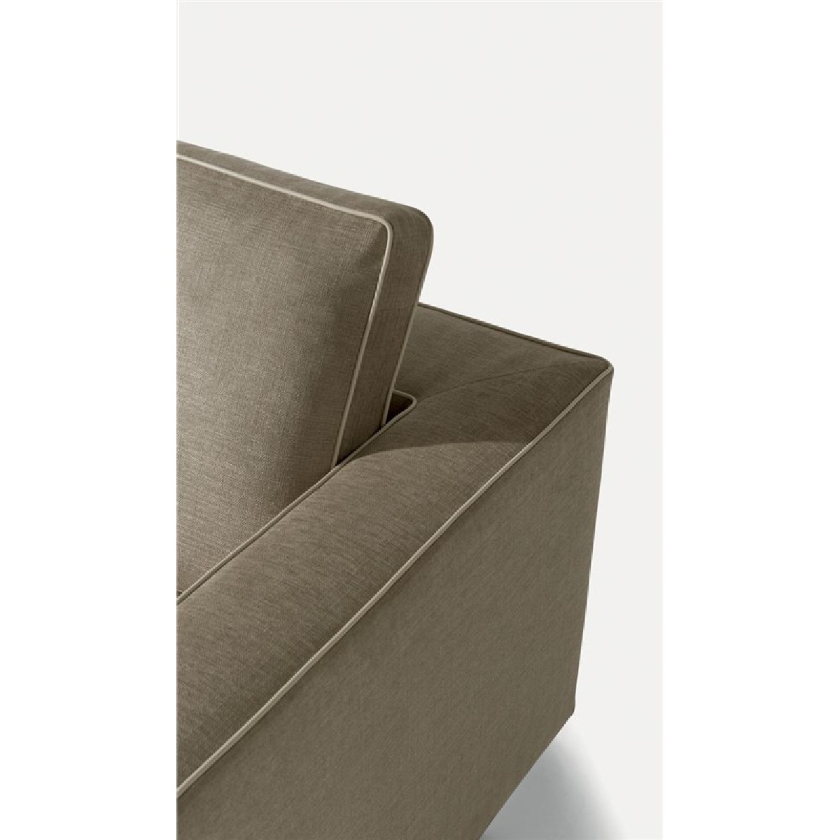 Sofa’s feet consist of solid oak wooden, available in all finishes.
